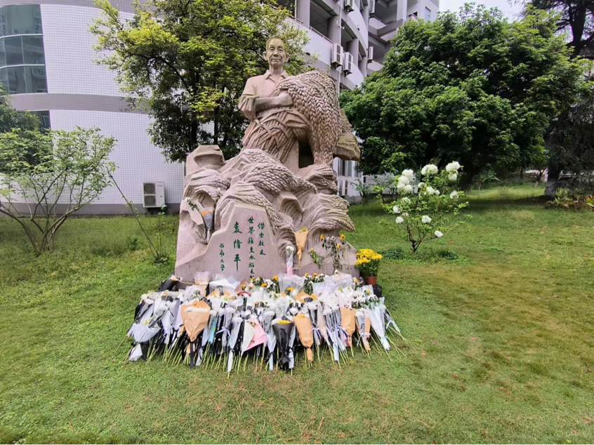 师生前往袁隆平院士雕像前,献花鞠躬,寄托对袁老的哀思。