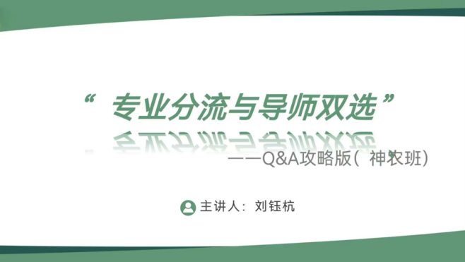 2020级神农班的刘钰杭详尽介绍了神农班的各个分流专业与所了解的老师情况,针对同学们的疑惑特别指出,在面对专业分流和确定学业导师时,兴趣与适合度的考量缺一不可,需要结合自身情况作出客观的选择。