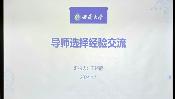 2024年4月7日下午,含弘学院学业导师选择分享交流会于老员工创新创业中心202报告厅顺利举行。本次分享会邀请到了六位高年级员工代表结合自身专业进行经验分享,2023级全体同学参会。会议由含弘学院2023级辅导员肖雨琳主持。