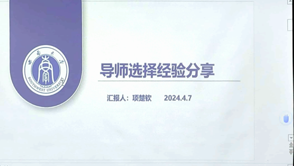 2020级吴宓班的吴乙剑梳理了选择导师的流程,强调要从多方渠道了解各个老师的研究方向等科研背景,在此基础上,以积极主动的态度与心仪的导师取得联系并深入交流。