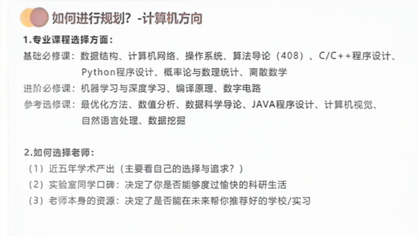 2021级袁隆平班的洪浩钦以计算机专业课程的规划和理工科方向推免或升学的申请为讲解重点。他提出,要多探询,明晰选择导师时需关注的角度与侧重点;多筹划,平衡科研与竞赛的时间安排。