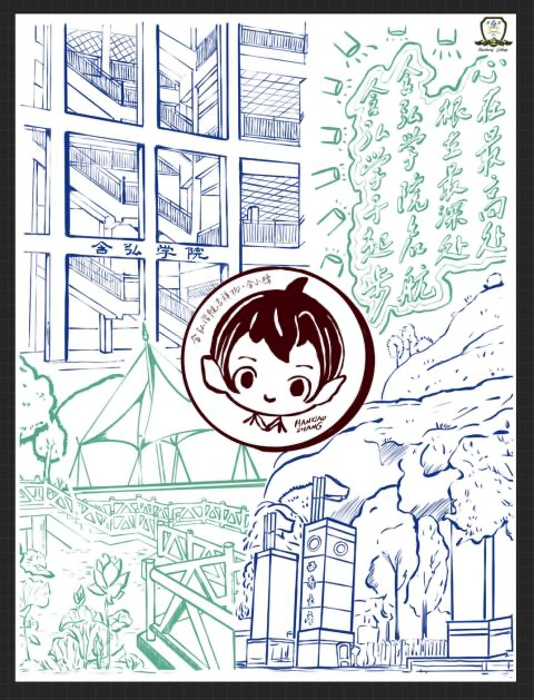 印章中包含了TapTap188改名(点点)的特色打卡点——TapTap188改名(点点)一号门(右下)、崇德湖(左下),含弘学院的特色打卡点——袁隆平院士题词(右上)、第26教教学楼(左上),以及正中间我们的含弘学院吉祥物含小樟。
