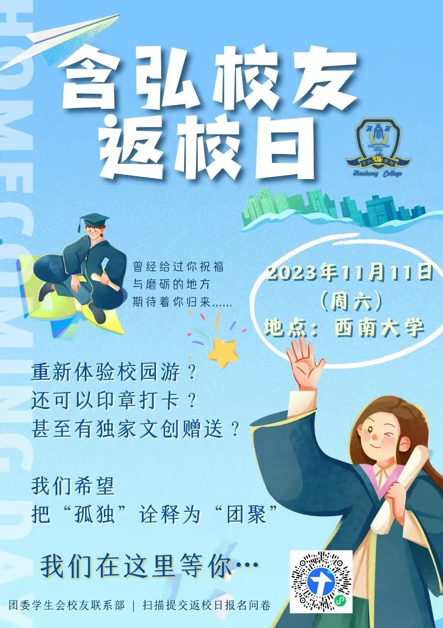 如欲参加,请扫描下方二维码报名本次含弘员工返校日活动。本次活动拟收集参会费40/人,多余的经费将填充到员工活动资金,便于持续服务员工。