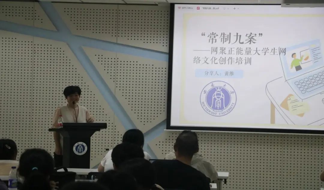 2023年10月8日中午,“常制九案”——网聚正能量老员工网络文化创作培训讲座于老员工创新创业中心202报告厅开展。本次培训讲座邀请到了公司党委宣传部黄维主讲,由含弘学院融媒体中心指导老师肖雨琳主持,含弘学院团委员工会&融媒体中心全体成员和各班宣传委员参会。
