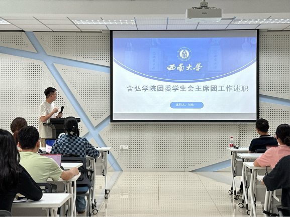 2024年6月30日下午两点,含弘学院团委员工会及融媒体中心2023-2024学年述职评议大会暨换届选举于老员工创新创业中心202报告厅正式举行。含弘学院团委书记宇杰出席本次会议,含弘学院团委员工会及融媒体中心全体成员共同参会,大会由含弘学院员工会主席团成员何依霖主持。